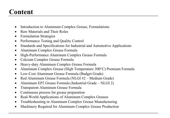 This book explores the science behind aluminum complex greases, breaking down the key components—thickener, base oil, and additives—and how they work together to deliver superior lubrication. Whether you are a seasoned chemist, engineer, or someone interested in high-performance lubricants, this guide provides valuable insights into creating and optimizing aluminum complex greases.