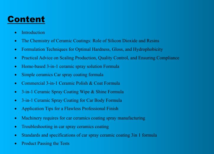 This Formula is ideal for DIY enthusiasts, small businesses, and professional detailers who want to expand their product offerings. CFS not only provides you with the full formula and detailed instructions but also supports you in sourcing the necessary ingredients and guiding you through the formulation process. This makes it easy for you to start making this amazing product on your own, whether for personal use or to launch your own car care brand.