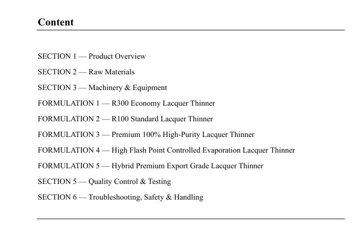 This professional Industrial Lacquer Thinner Formulations book provides a complete industrial guide to manufacturing lacquer thinners across all commercial grades, including R300 economy, R100 standard, premium 100% high-purity, and export-grade systems.