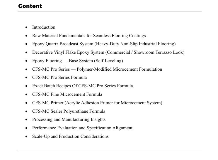CFS is a leading formulation services provider specializing in advanced construction chemicals, protective coatings, polymer flooring systems, and performance-driven industrial products. Our flooring formulas are used by professional installers, factory flooring contractors, coating manufacturers, and brand owners worldwide.