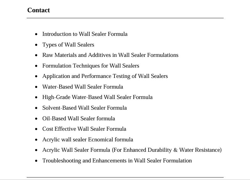Wall Sealer Making Formula