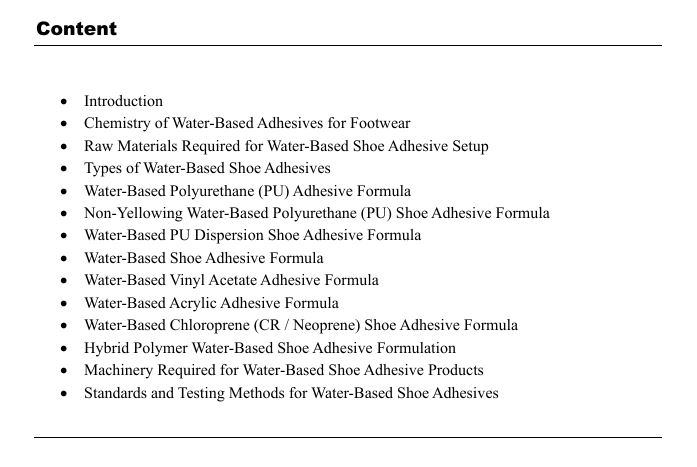 In the rapidly evolving world of footwear manufacturing, Water-Based Shoe Adhesive Formula has become the benchmark for sustainable, high-performance bonding technology. Developed by Chemical Formula Services (CFS), the Water-Based Shoe Adhesives Formula Book is a comprehensive technical guide designed for chemists, formulators, and manufacturers who aim to create eco-friendly, industrial-grade adhesive systems tailored for modern shoe production.