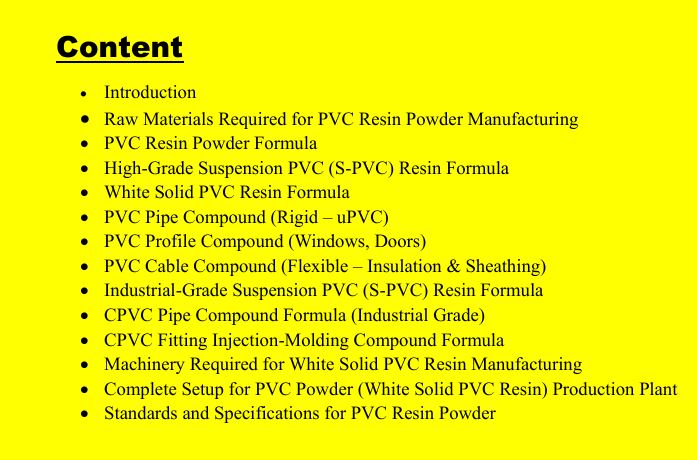 Don’t miss out on the opportunity to enter the lucrative PVC resin market. Purchase our comprehensive formula book and start your journey toward a successful and profitable business. Whether you’re a seasoned professional or a newcomer to the industry, our book is your key to mastering the art of PVC resin production.